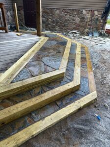 In Akron, we recently completed a custom flagstone steps project with a landing to create